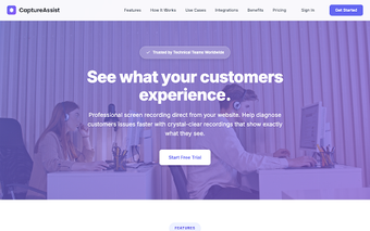Основные функции CaptureAssist включают возможность захвата записей экрана непосредственно из браузера Chrome, что гарантирует, что пользователям не нужно дополнительное программное обеспечение. Инструмент придает приоритет ясности, позволяя получать кристально чистые видео, которые могут помочь в устранении неполадок и учебных сценариях. Это расширение особенно полезно для команд поддержки клиентов, педагогов и всех, кто нуждается в быстром и эффективном обмене визуальным контентом.
